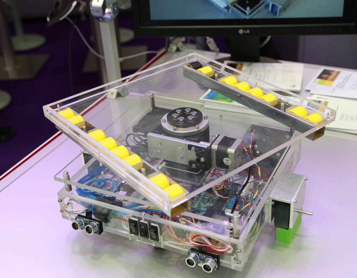In this project, various aspects of driverless transport systems and their use were researched. In addition to normal operation with a rotary axis, cooperative journeys have also been researched and tested.